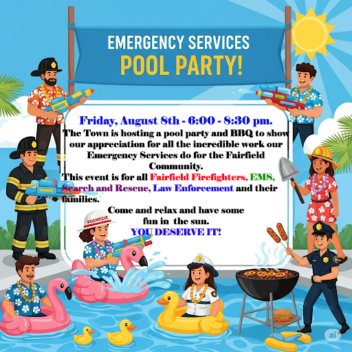 • 11 AM – 6 PM: Inflatable water slides in the Fairfield Town Park – $10 a person